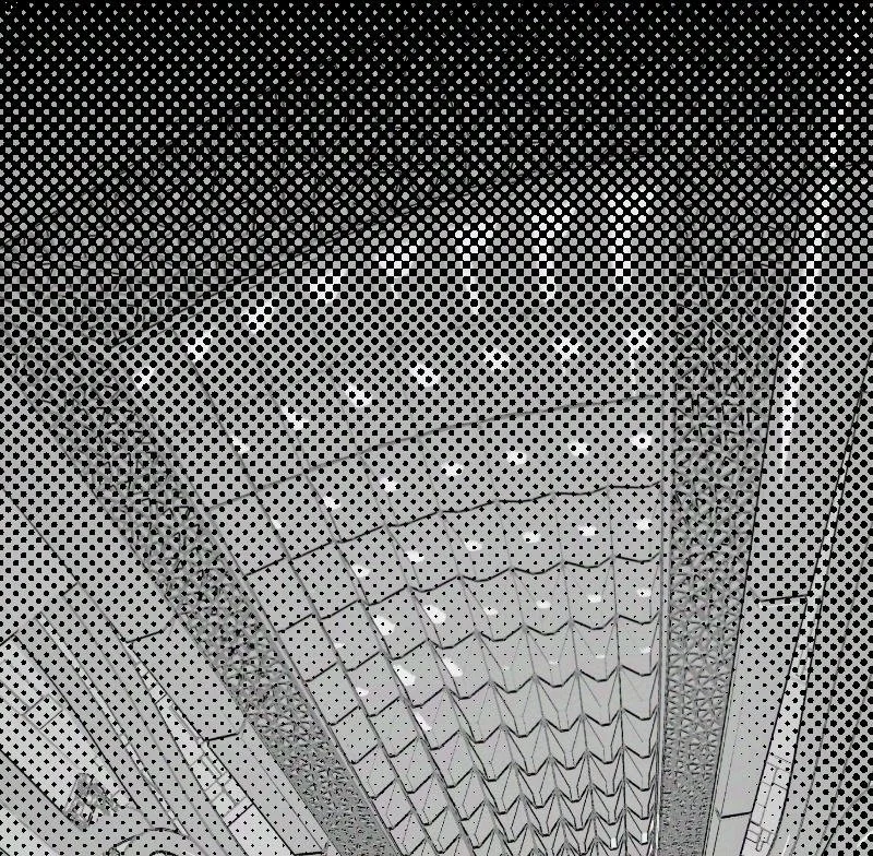 Close-up of a building's ornate ceiling with intricate patterns and decorative architectural details.